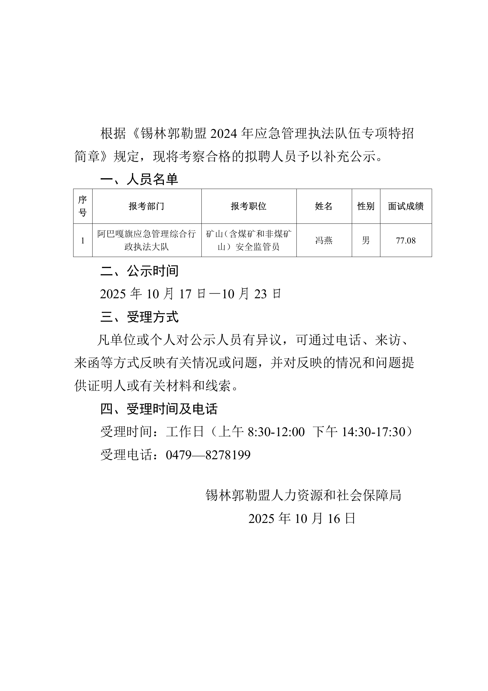 錫林郭勒盟2024年應(yīng)急管理執(zhí)法隊(duì)伍專項(xiàng)特招擬聘人員補(bǔ)充公示
